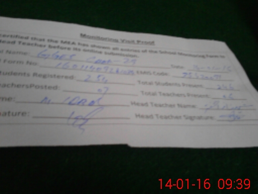 | Certified that this School was Inspected by the Undersigned MEA/DMO Today and the Information Stated Above is as Per Record. | |||||
