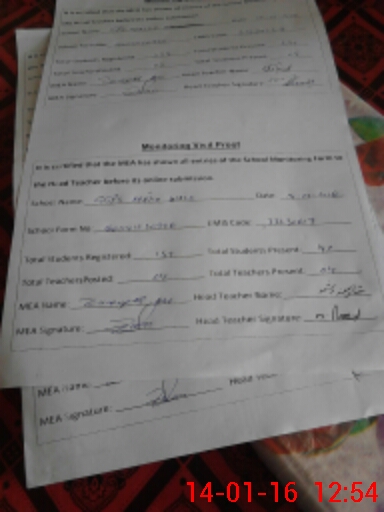| Attendance Register | Head Teacher | MEA with School | Visit Proof |