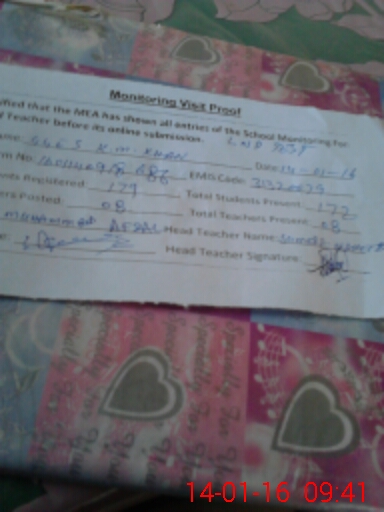 | Attendance Register | Head Teacher | MEA with School | Visit Proof |