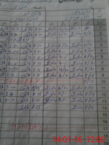 | CNIC | Full Name | Designation | R/C | Absence During Last Calender Month |
