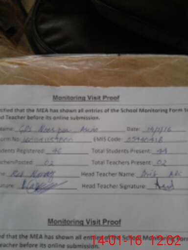 | Attendance Register | Head Teacher | MEA with School | Visit Proof |