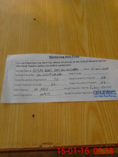 | EMIS Code: 31330752 | Name of School: GGPS BASTI JAM ALLAH DAR PANWAR | |||