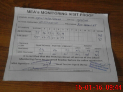 | Attendance Register | Head Teacher | MEA with School | Visit Proof |