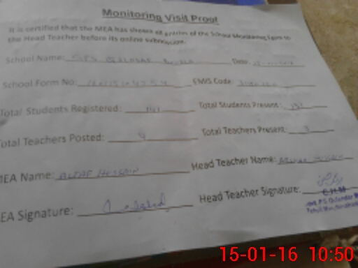 | Name: MU**** Sh**** Iq**** Designation: (School Headmaster's/Headmistress's) PST Phone/Cell Number: 03**** |