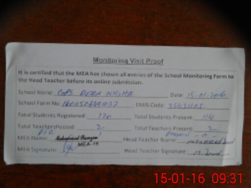 | EMIS Code: 35431105 | Name of School: GPS DERA NIGAH | |||