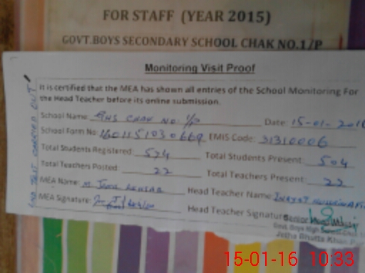| EMIS Code: 31310006 | Name of School: GHS CHAK 1/P JETHA BHUTTA | |||