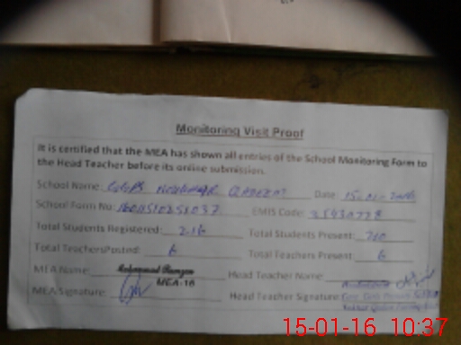 | Attendance Register | Head Teacher | MEA with School | Visit Proof |