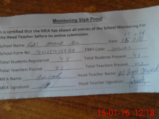 | Certified that this School was Inspected by the Undersigned MEA/DMO Today and the Information Stated Above is as Per Record. | |||||