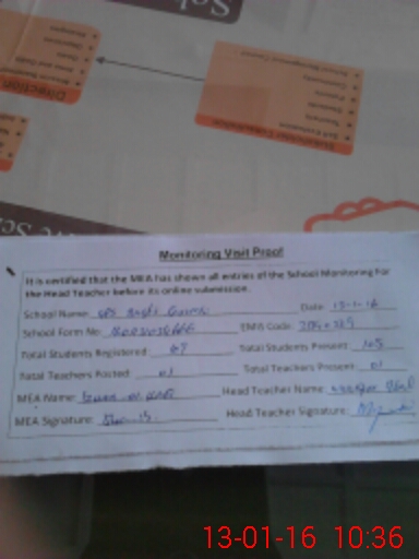 | Attendance Register | Head Teacher | MEA with School | Visit Proof |
