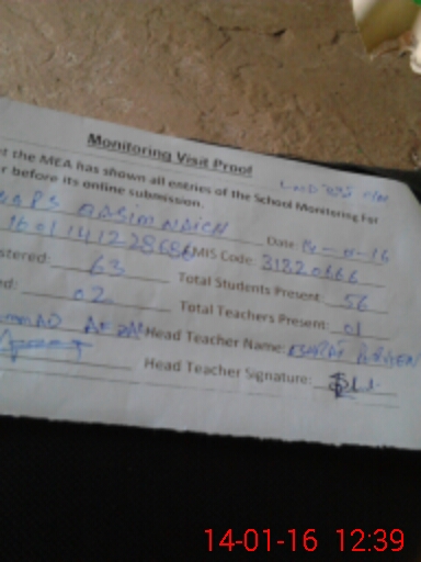 | Attendance Register | Head Teacher | MEA with School | Visit Proof |