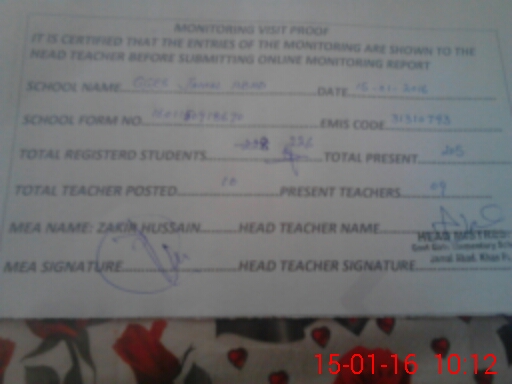 | EMIS Code: 31310793 | Name of School: GGHS JAMAL ABAD | |||