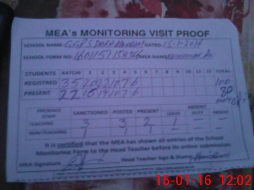 | Certified that this School was Inspected by the Undersigned MEA/DMO Today and the Information Stated Above is as Per Record. | |||||