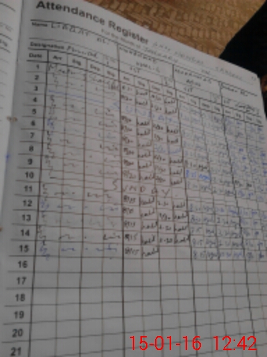 | CNIC | Full Name | Designation | R/C | Absence During Last Calender Month |