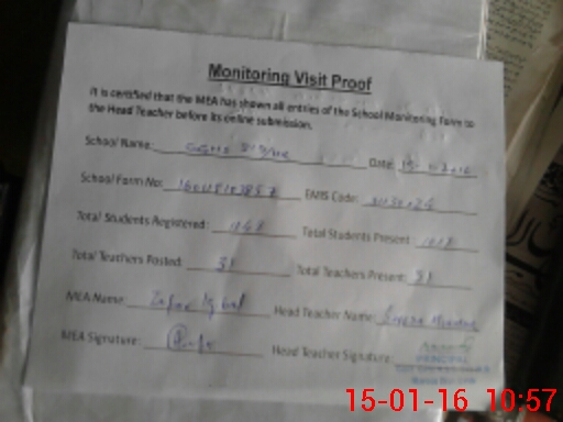 | Attendance Register | Head Teacher | MEA with School | Visit Proof |