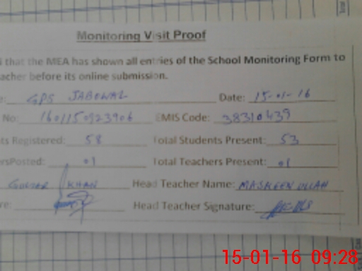 | EMIS Code: 38310439 | Name of School: GPS JABOWAL | |||