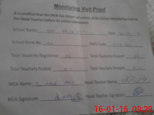 | Certified that this School was Inspected by the Undersigned MEA/DMO Today and the Information Stated Above is as Per Record. | |||||
