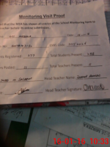 | Attendance Register | Head Teacher | MEA with School | Visit Proof |