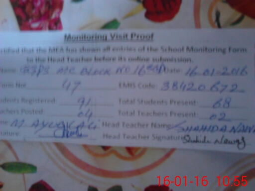 | EMIS Code: 38420672 | Name of School: GGPS MC BLOCK NO.16 SARGODHA | |||