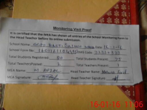 | EMIS Code: 32320533 | Name of School: GGPS BASTI SAJHOO WALA | |||