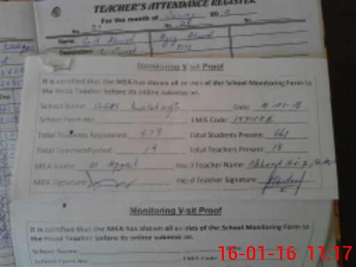 | Attendance Register | Head Teacher | MEA with School | Visit Proof |
