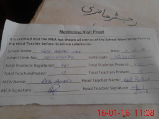 | Certified that this School was Inspected by the Undersigned MEA/DMO Today and the Information Stated Above is as Per Record. | |||||