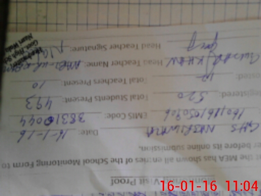 | Attendance Register | Head Teacher | MEA with School | Visit Proof |