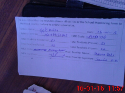 | Attendance Register | Head Teacher | MEA with School | Visit Proof |