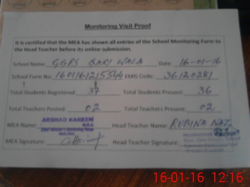 | EMIS Code: 36120281 | Name of School: GGPS GARI WALA SHUJABAD | |||
