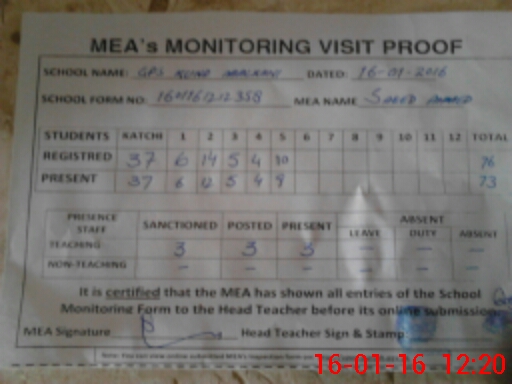 | EMIS Code: 36410218 | Name of School: GPS KUND MALKANI NO.1 SARAI SIDHU | |||