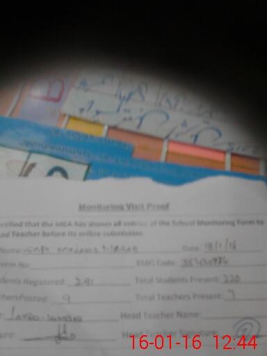 | Attendance Register | Head Teacher | MEA with School | Visit Proof |