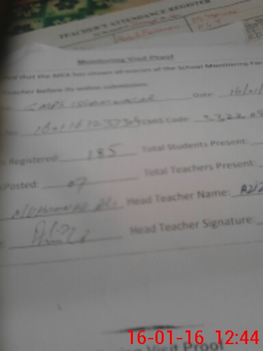 | Attendance Register | Head Teacher | MEA with School | Visit Proof |