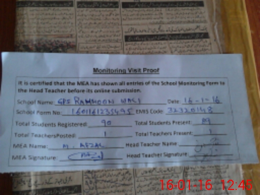 | EMIS Code: 32320148 | Name of School: GPS RAHMOON WALI | |||