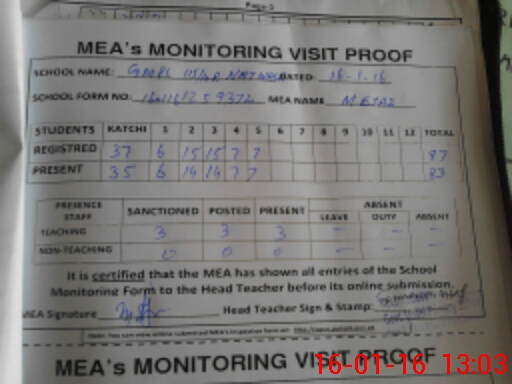 | Attendance Register | Head Teacher | MEA with School | Visit Proof |