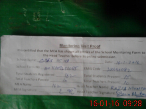 | Certified that this School was Inspected by the Undersigned MEA/DMO Today and the Information Stated Above is as Per Record. | |||||