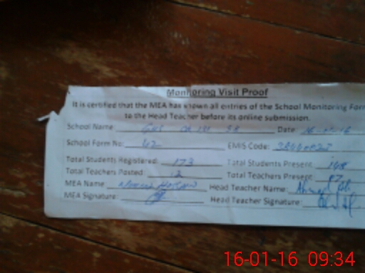 | Attendance Register | Head Teacher | MEA with School | Visit Proof |