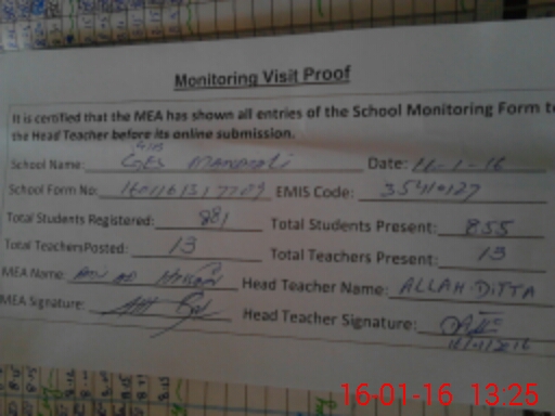 | Certified that this School was Inspected by the Undersigned MEA/DMO Today and the Information Stated Above is as Per Record. | |||||
