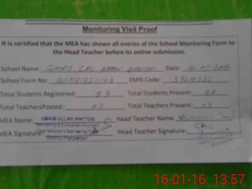 | EMIS Code: 39210382 | Name of School: GMPS LAL KHAN DHUDI | |||