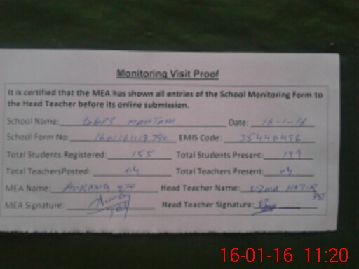 | Certified that this School was Inspected by the Undersigned MEA/DMO Today and the Information Stated Above is as Per Record. | |||||