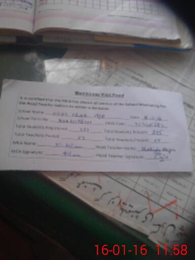 | Attendance Register | Head Teacher | MEA with School | Visit Proof |