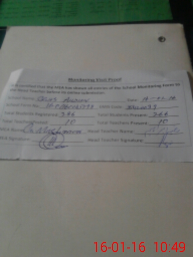 | Attendance Register | Head Teacher | MEA with School | Visit Proof |