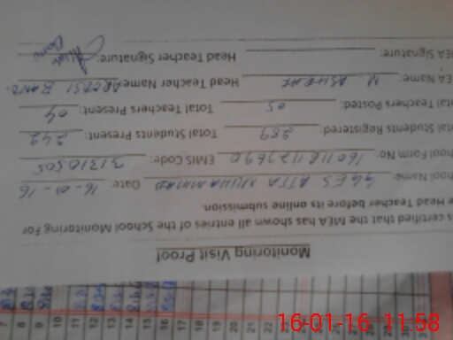 | Attendance Register | Head Teacher | MEA with School | Visit Proof |