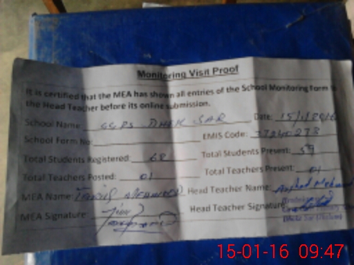 | EMIS Code: 37240273 | Name of School: GGPS DHOK SAR | |||