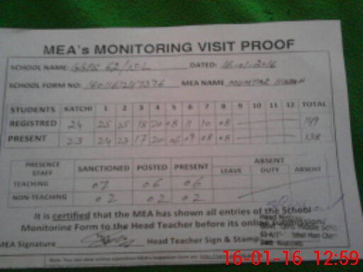 | Attendance Register | Head Teacher | MEA with School | Visit Proof |