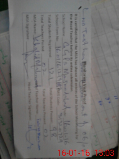 | Monitoring Date: 16-01-2016 | Start Time: 16-01-2016 12:19 PM | End Time: 16-01-2016 01:03 PM | Name of MEA: Mu**** As**** KP**** | |