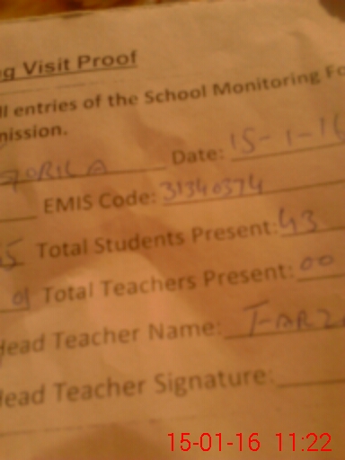 | Attendance Register | Head Teacher | MEA with School | Visit Proof |