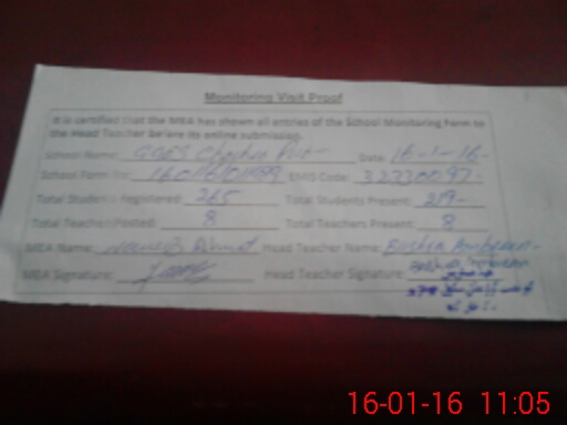 | Attendance Register | Head Teacher | MEA with School | Visit Proof |
