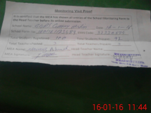 | Certified that this School was Inspected by the Undersigned MEA/DMO Today and the Information Stated Above is as Per Record. | |||||