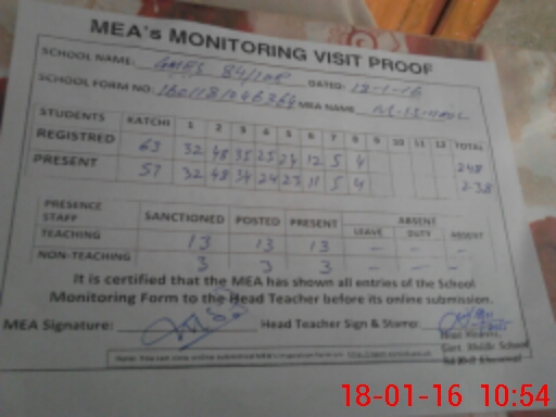 | Certified that this School was Inspected by the Undersigned MEA/DMO Today and the Information Stated Above is as Per Record. | |||||