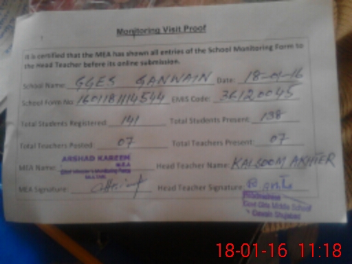 | EMIS Code: 36120045 | Name of School: GGES GANWAIN SHUJABAD | |||