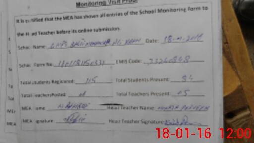 | Certified that this School was Inspected by the Undersigned MEA/DMO Today and the Information Stated Above is as Per Record. | |||||